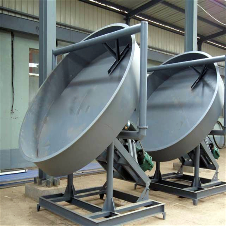 圓盤(pán)造粒機(jī)的主要工作部件為其造粒盤(pán),設(shè)備整體采用的是圓弧結(jié)構(gòu),成球率高達(dá)百分之九十三。造粒盤(pán)的角度可以根據(jù)需要進(jìn)行調(diào)節(jié),范圍在40—60度之間。
